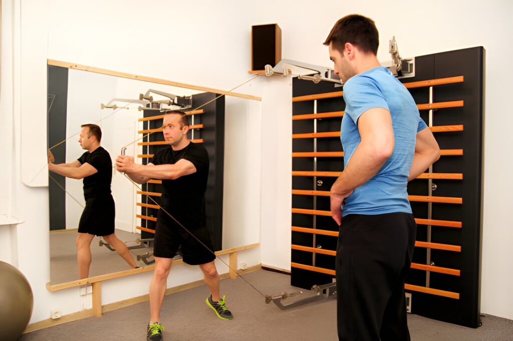 Targeted strength training using the Kinesis Wall functional training system to rebuild movement patterns and strengthen supporting muscles.